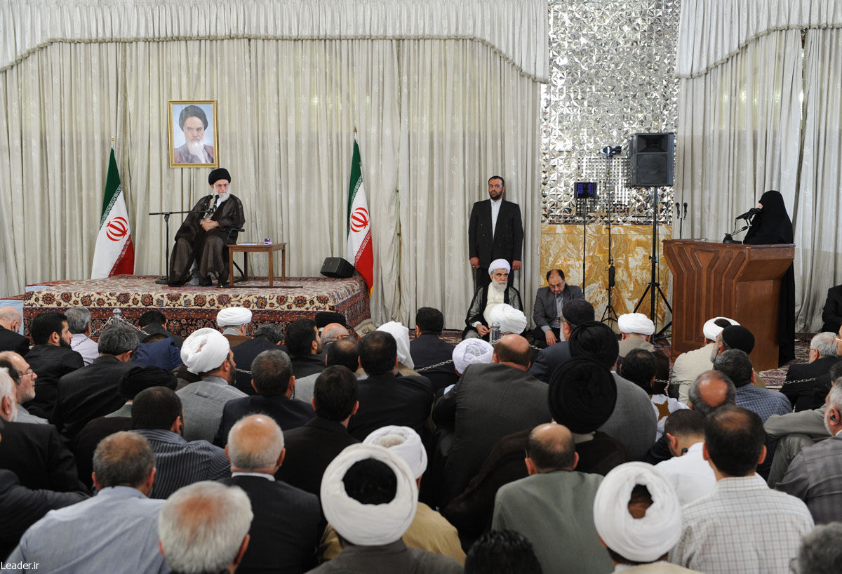 رهبر انقلاب اسلامی در این دیدار كه در تالار آئینه حرم مطهر امام رضا علیه السلام در مشهد مقدس برگزار شد، در بیان ظرفیت ها و امتیازات مکتب اهل بیت علیهم السلام خاطر نشان كردند: اولین ملت و كشوری كه توانست نظام مبتنی بر اسلام و قرآن را بوجود آورد، یك ملت و كشور پیرو اهل بیت علیهم السلام بود.